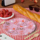 Serve up love in style with these charming paper plates. Adorned with the word "Love" and heart designs in white, brown, and red on a soft pink background, these plates are perfect for Valentine's Day, anniversaries, or any celebration of love.