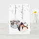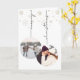 This festive design features 2 elegant Christmas Ornament photos, which are customizable, hanging from the ceiling. The strings on the ornaments display 'Merry Christmas'. In the back, the card can be fully customizable. Use our greeting or use your own!