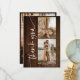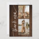 Moderne simple et élégant pinceau script avec 5 photos collage grille mariage merci sur bois de grange de campagne rustique marron.