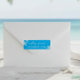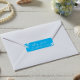 Chic, modern and simple coastal beach wedding return address label with your names in white elegant hand written script calligraphy on a bright blue background and a stylish touch of starfish. Simply add your names and address. Exclusively designed for you by Happy Dolphin Studio. If you need any help or matching products please contact us at happydolphinstudio@outlook.com. We're happy to help you make your wedding the most beautiful day!