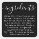 Modern, black or custom colour ingredient list product label with the text "ingredients" in an elegant calligraphy script font. Change colours, fonts, move and resize text with the design tool. Follow us on Facebook: @businessstationery for more products, news, sales and more.