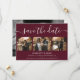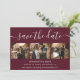 Elegant burgundy wedding photo save the date cards with modern calligraphy. Easily personalize this card with your images and wedding details including a wedding website if applicable.