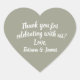 These thank you stickers feature a heart. Font choice and colour of text is also customizable to fit your style.