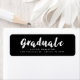 Habillez votre faire-part de graduation et vos enveloppes de soirée avec nos étiquettes d'adresse de retour de graduation Black & White pour le script de brosse moderne. Les étiquettes d'adresse de retour de graduation modernes comportent une police "grade" dans un script de brosse blanche avec votre nom et adresse affichée ci-dessous contre un arrière - plan noir.