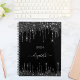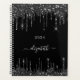 Un arrière - plan noir classique décoré avec des gouttes. Personnalisez et ajoutez une année et un nom. Le nom est écrit avec un script de style moderne écrit à la main avec des swashes. Pour que les swashes ne suppriment que le nom de l'échantillon, laissez les espaces ou émoticônes devant et après le nom. Parfait pour l'école, le travail ou l'organisation de votre vie personnelle/familiale.
