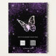 Arrière - plan noir, texte blanc. Décoré de faux parties scintillant violet, de mousseux et d'un grand papillon. Personnalisez et ajoutez une année, votre nom et un titre. Le nom est écrit avec un script de style moderne écrit à la main.