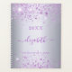 Un arrière - plan faux argenté décoré de faux parties scintillant violet. Personnalisez et ajoutez votre nom. Le nom est écrit avec un script de style moderne écrit à la main avec des swashes. Pour que les swashes ne suppriment que le nom de l'échantillon, laissez les espaces ou émoticônes devant et après le nom.