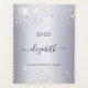 Un arrière - plan métallique à l'aspect faux argenté décoré de poussière de parties scintillant. Personnalisez et ajoutez une année, votre nom et un titre. Le nom est écrit avec un script de style moderne écrit à la main avec des swashes. Pour que les swashes ne suppriment que le nom de l'échantillon, laissez les espaces ou émoticônes devant et après le nom.
