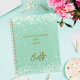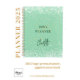 Un arrière - plan vert sage décoré de confettis. Personnalisez et ajoutez un nom. Le nom est écrit avec une grande écriture manuscrite moderne, style signature. Parfait pour l'école, le travail ou l'organisation de votre vie personnelle/familiale.
