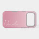 Un coque iphone personnalisé dans un design moderne en dégradé rose doux. La police de script d'écriture à la mode ajoute une touche unique lors de l'ajout de votre nom.