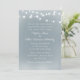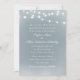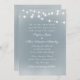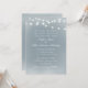 Dusty blue watercolor wedding invitations with white string lights and an elegant script font throughout the entire invitation.