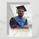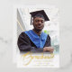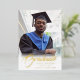 Cartes de faire-part de graduation de feuille d'or élégantes, avec script de calligraphie élégant avec texte moderne en papier réel (les options de couleur sont or, argent et rose) et votre photo d'études supérieures. Le verso de la carte offre des espaces de texte personnalisés pour des informations sur l'obtention du diplôme ou peut être reformulé pour faire de la carte une invitation de grand parti. Écriture en noir sur gris argenté clair sur le dos de la carte ou customiser facilement l'arrière - plan à une couleur de votre choix. Pour voir d'autres articles comme celui-ci, visitez mon magasin ici à "www.Zazzle.com/LakeViewCardCo". Merci