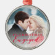 Script First Christmas Engaged Holiday Photo Metal Ornament