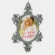 Script First Christmas Engaged Holiday Photo Snowflake Pewter Christmas Ornament