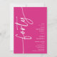 Celebrate your milestone 40th birthday in style with our 'Elegant Script 40th Birthday Invitation.' This invitation exudes sophistication with its elegant script typography, showcasing the word 'forty' running up the side. Plus, our easy-to-customize template allows you to add your own event details effortlessly. Say goodbye to fuss and hello to an unforgettable celebration.