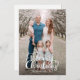 Modern photo card design with hand drawn script, full bleed photo front and 3 photos on the back