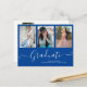 Script Graduate 3 Photo Collage Blue Graduation Announcement Postcard