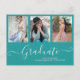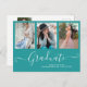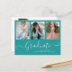 Script Graduate 3 Photo Collage Teal Graduation Announcement Postcard