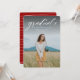 A simple classic script "graduate" in white accentuates a single vertical photo of your grad. This graduation announcement works for both college or high school graduates and is simple enough to let your photo shine. It's a timeless design and also features a striped backer with a customizable colour (default is a dark red). The words are at the top of the photo but the design is also available with the words at the bottom.