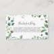 This script green foliage baby shower book request enclosure card is perfect for a simple baby shower. The design features watercolor hand-drawn elegant botanical eucalyptus branches and leaves, arranged in beautiful bouquets and geometric patterns.