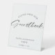Elegant, minimal, and simple Please Sign our Guestbook pedestal sign with custom name/text for the bride and groom.