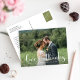 This full-bleed photo postcard pairs the charming phrase "love thanks" in flowing white script with a sweet heart accent, creating a warm and modern thank you keepsake. Your favourite wedding photo fills the entire front while the customizable couple names and date are displayed below in clean lettering. A beautiful way to express gratitude and share a cherished memory with family and friends.