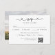 Designed for the modern couple, this card replaces clutter with convenience. A prominent QR code allows guests to instantly RSVP online, while the remaining space is perfectly utilized to share essential wedding details, from accommodations and reservations to venue directions. Flip the card over to reveal a personal touch: a full-bleed photo of you and your partner. It’s the perfect marriage of minimalist style, modern efficiency, and heartfelt personalization.