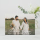This charming folded thank you card features a full-bleed couple photo with "thank you" written in casual white script, a small heart nestled between the words. The back reveals a second photo alongside a warm, customizable thank you message. Names and wedding date are fully editable to make it uniquely yours. A sweet and modern choice for newlyweds.