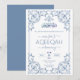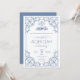 A script blue aqeeqah invitation for a baby boy with an Islamic ornate border theme. The card is easy to customize with your wording, font, font color, paper shape options, and choice of paper types. The subtle look is stunning on the front, while the blue-contrasting backside makes this akika dinner invitation truly unique.