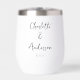 Script écrit à la main Quirky Whimsy Mariage Custom Thermal Wine Tumbler en noir et blanc