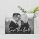 Script manuscrit moderne tendance Enregistrer la date Fiançailles Faire-part noir et blanc Carte photo