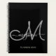 Script moderne, tendance girly noir et gris personnalisé nom personnalisé et planificateur monogrammed. Ce design simple et élégant est composé d'un modèle de prénom blanc en caractères cursifs avec des pointes en blanc et d'un énorme script initial en monogramme écrit à la main en gris sur arrière - plan noir. Ce carnet féminin et joli est une idée cadeau parfaite pour les affaires, les professionnels, l'école, la fête d'anniversaire, le mariage et toute fête ou occasion pour quelqu'un qui aime les styles girly et moderne.