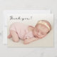 Simple moderne script manuscrit Photo Nouveau-né Carte de Merci bébé Faire-part de naissance. Dispose d'un beau texte "merci" dans un script de superposition photo de police écrit à la main. Message personnel préfabriqué à l'arrière en noir et blanc. Sexe neutre, idéal pour bébé fille ou bébé garçon. Facile à personnaliser avec votre photo bébé et les détails.