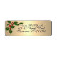 Une simple étiquette d'adresse de retour avec arrière - plan or métallique et découpe 2D de houx et de baies dans un rouge et vert gai. Joyeuses fêtes !