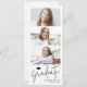 Script moderne noir Faire-part de graduation avec capuchon de graduation et 3 photos, simple et amusant. Personnalisez-le avec vos propres photos et informations sur les grandes fêtes.