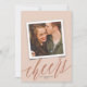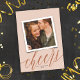 Ce carte photo moderne mais élégant de la nouvelle année présente un grand script "applaudissements" en rouille sur un arrière - plan rose neutre avec une seule photo de carré. Au-dessus de la photo est une fausse image photo cadre - le design réel n'est pas 3D. Sur le dos de la carte est la même couleur bronzée. **TOUTES les couleurs sont personnalisables - couleur arrière - plan, couleur texte, même couleur script de calligraphie ! Cliquez simplement sur "customiser la conception plus loin" dans le menu déroulant.**
