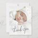 Nouveau carte de remerciements bébé avec votre photo et le texte "merci" sur le devant dans une police de style manuscrit moderne. Message personnalisé à l'arrière. Modifiez les couleurs et les polices, déplacez et redimensionnez les éléments de l'outil de conception.