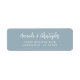 Cette étiquette d'adresse de retour mariage simple et moderne comporte les noms du couple en écriture blanche stylée, avec deux lignes pour l'adresse ci-dessous en police blanche sans serif sur un arrière - plan bleu poussiéreux.