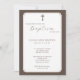 Script Élégant Moderne Taupe Baptême Invitation. Personnalisez avec les détails de votre événement. Nom du bébé baptisé, emplacement de l'église, emplacement de l'accueil et informations RSVP.