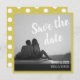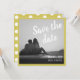Script Moderne Enregistrer Le Carte photo Date. Ce design élégant et simple avec une bordure contrastée en jaune citron est le design parfait pour annoncer vos nouveautés à vos amis et votre famille. Nous avons ajouté un motif à pois au dos de la carte, mais n'hésitez pas à changer cela. Ajoutez votre photo préférée, vos noms, et votre date à la carte et vous êtes tous prêts.