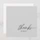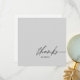 Carte de remerciements chic dans un script noir fin moderne sur un arrière - plan gris clair. Tapez un message personnel sur le dos ou supprimez-le pour écrire à la main le vôtre. Parfait pour la douche bébé ou nuptiale, mariage, affaires, professionnel ou personnel.