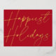 Cette carte postale de vacances d'affaires présente un arrière - plan rouge festif et un script de calligraphie moderne "Happiest Holidays" saluant en papier VRAI sur le devant. Au verso, vous trouverez un autre script de salutation (qui peut être supprimé) ainsi que votre propre salutation et votre propre texte. Merci à vos clients ET faites la promotion de votre entreprise cette saison de vacances en envoyant à vos clients une carte postale de vacances FOIL magnifique!
