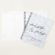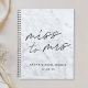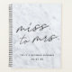 Carnet de wedding planner de mariage sur mesure avec design de calligraphie moderne "Miss. à Mme" sur arrière - plan en marbre gris.