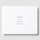 Ce livre d'hôtes de mariage monogramme de script moderne est parfait pour un mariage minimaliste. Le design simple en noir et blanc présente une typographie industrielle unique avec style boho moderne. Personnalisable dans n'importe quelle couleur. Gardez le design minimal et élégant, en l'état, ou personnalisez-le en ajoutant vos propres graphiques et artwork. Personnalisez la couverture avec les noms de la mariée et du marié et la date du mariage.
