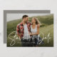 Avec une seule photo horizontale et un script moderne écrit "enregistrer la date", cette carte est la façon idéale d'annoncer votre fiançailles et le prochain mariage à vos amis et votre famille. Le texte blanc est audacieux et moderne mais toujours sophistiqué. Le texte personnalisable sur le devant a de la place pour les noms, la date, l'emplacement et d'autres informations comme un site Web mariage. Le dos est un tonneau gris neutre et blanc étoilé. Vous pouvez également inclure une deuxième photo et du texte supplémentaire au dos. La couleur est modifiable en cliquant sur "Personnaliser".