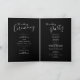 Double face simple moderne blanc et noir programme de mariage. Modifiez ce programme de mariage avec votre nom, dates, libellé de la cérémonie, accompagnateurs de mariage et merci. Un programme simple mais élégant remplace simplement un exemple de texte par vos propres informations de mariage. Création de texte graphique simple d'origine par www.mylittleedenweddings.com