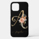 Script Monogram A Black Gold BOHO Pink Floral Leaf Case-Mate iPhone Case