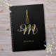 An elegant black and gold script monogram name recipe notebook featuring a chic gold whisk. Personalize with your initial and name to create a beautiful elegant gift. Perfect for home and business use. Designed by Thisisnotme©