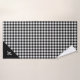 Stylish custom towel set features a handsome black and white buffalo plaid with a white script monogram in a black triangle in the lower right corner of each piece. Customize it with your initial in the sidebar. Black, white, and grey squares form a bold checked pattern. Buy the full set or any piece of it.
