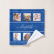 Faites votre propre collage photo de famille unique. Utilisez six, 6 de vos photos préférées de vos enfants, de votre famille, de vos amis ou de votre animal de compagnie! Moderne, féminine et glamour avec un arrière - plan bleu profond. Personnalisez et ajoutez votre nom. Le nom est écrit avec un grand script de style moderne écrit à la main. Lettres de couleur blanche. Pour que les swashes ne suppriment que le nom de l'échantillon, laissez les espaces ou les émoticônes devant et après le nom